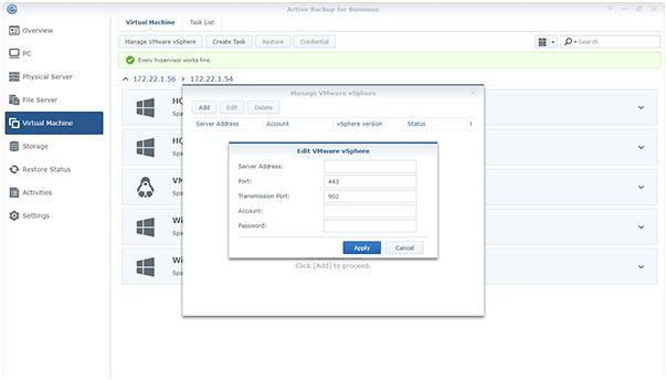 只需將數(shù)據(jù)從物理服務(wù)器遷移到虛擬平臺(如 Synology VMM 和 VMware vSphere),即可應(yīng)對意外中斷或作為升級測試環(huán)境。 -