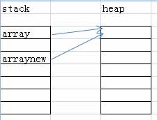 按引用傳遞時(shí)array指向的stack中的值不會(huì)復(fù)制一份,而是直接傳過去。這樣arraynew[0]= 10這樣賦值時(shí)也同樣改變了heap中 1 2 3 的值,變?yōu)?0 2 3,如果